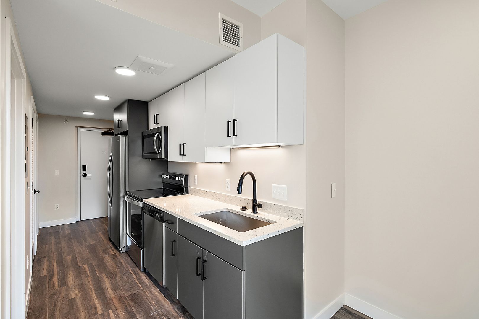 This beautiful 1 bed/1 bath apartment features an incredible layout with high end amenities including all new stainless appliances, quartz countertops, large windows, in-unit washer/dryer and - unique for studios - a luxurious, large bathroom.