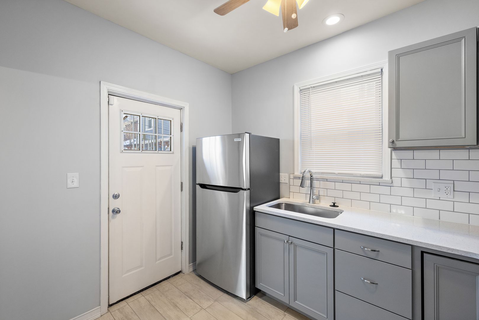 Charming brick end-unit townhome in Detroit’s vibrant North End neighborhood with a private entrance and thoughtful updates throughout. Refinished hardwood floors and a freshly painted interior create a bright, welcoming feel from the moment you step inside. The main level offers a spacious living room anchored by a character-filled brick fireplace, along with a dedicated dining room perfect for hosting friends or cozy dinners at home. The renovated kitchen features light gray cabinetry, a timeless white subway tile backsplash, stainless steel appliances and direct access to a private wooden deck—perfect for morning coffee or dining al fresco on warm evenings. Upstairs you’ll find three comfortable rooms and 1 full bathroom - use 2 of the rooms as bedrooms and the third as a reading room, home office or creative space. The third room on the second level has a stairwell leading to the unfinished third floor that can be used as an artist's loft or additional storage. The unfinished basement also provides plenty of room for storage, hobbies, or future possibilities. In-unit laundry is conveniently located in the basement. A great blend of classic Detroit character and everyday functionality, all in one of the city’s most exciting and evolving neighborhoods.